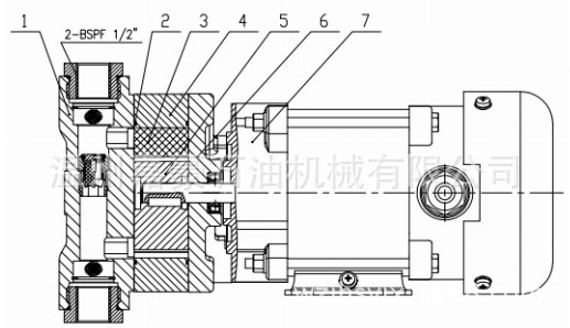 1、泵體2、O形圈3、葉片4、泵環(huán)5、轉(zhuǎn)子6、端蓋7、電機